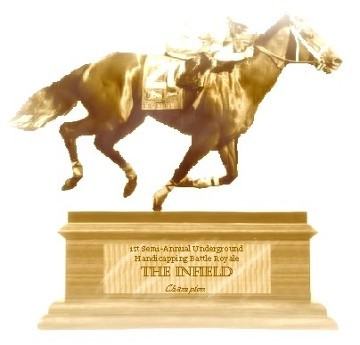 I’d like to thank Thunder Gulch for winning the 1995 Kentucky Derby and making my first pick a winning one.  I’d also like to thank Al Gore for inventing the internet that allows me to keep up with all the racing info I need to win awesome contests like SAUHBR.    Thanks again BT, for your rivalry and for the fantastic trophy.  Finally, a special shoutout to Mom, Dad, Sis and God — Thanks!